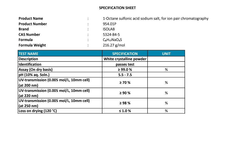 1-Octanesulfonıc Acıd Sodıum Salt ≥99.0% For Ion Paır Chromat Cas No:5324-84-5 100G cam şişe