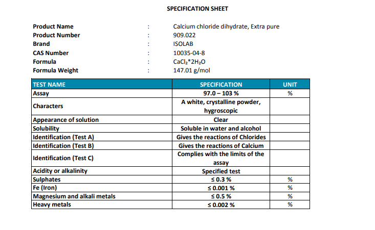 CALCIUM CHLORIDE ≥ 97%, EXTRA PURE
