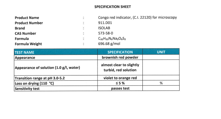 Congo Red Indıcator, (C.I. 22120) For Mıcroscopy Cas No:573-58-0 50G plastik şişe