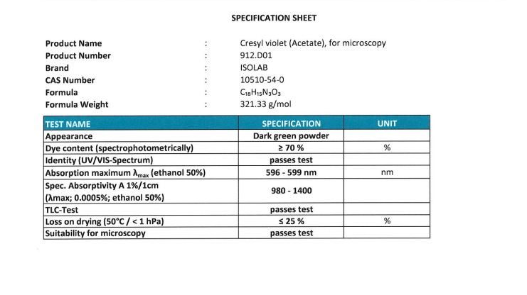 Cresyl Vıolet(Acetate) , For Mıcroscopy Cas No:10510-54-0 50G plastik şişe