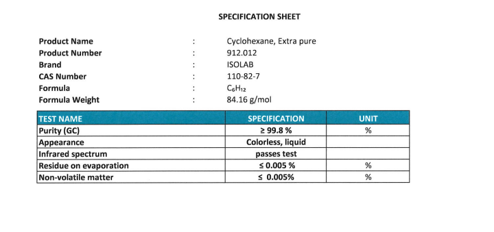Cyclohexane ≥ 99.8%, Extra Pure Cas No:110-82-7 2,5LT cam şişe
