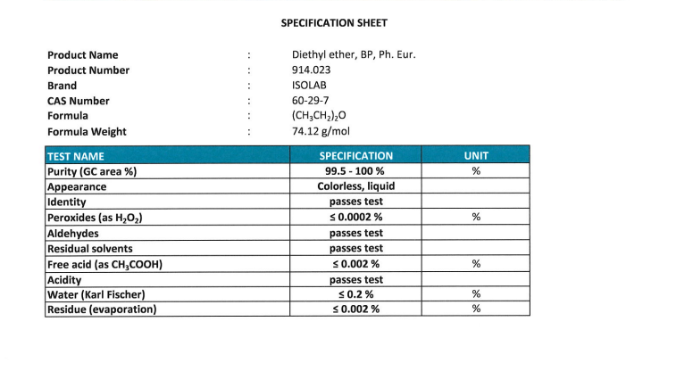 Dıethyl Ether ≥ 99.5%, Bp , Ph. Eur. Cas No:60-29-7 2,5LT cam şişe