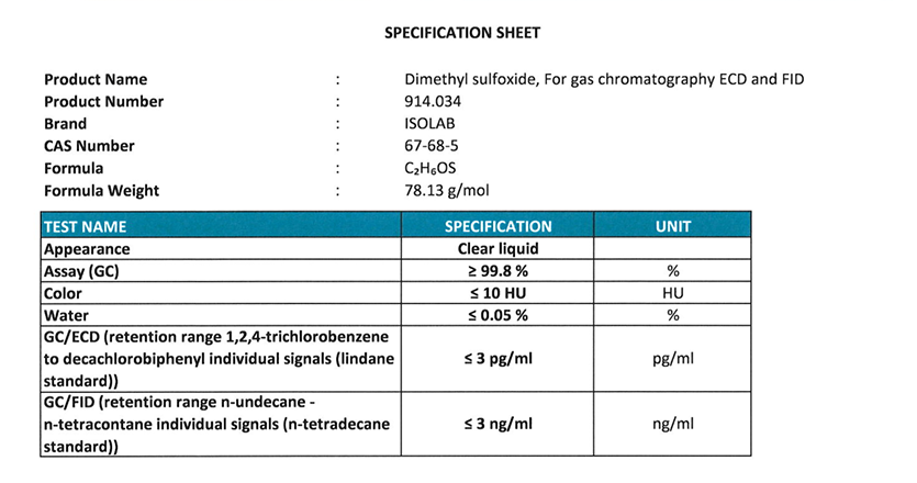 Dımethyl Sulfoxıde ≥ 99.8% (Dimetil Sülfoksit) , For Gas Chromatography Ecd And Fı Cas No:67-68-5 2,5LT cam şişe