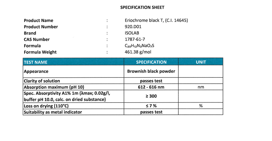 Erıochrome Black T, (C.I. 14645) Cas No:1787-61-7 50G plastik şişe