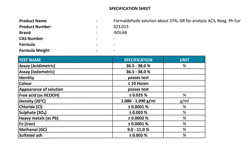 Formaldehyde Solutıon About 37%, Gr For Analysıs Acs,Reag. Ph Cas No:- 2,5LT plastik şişe