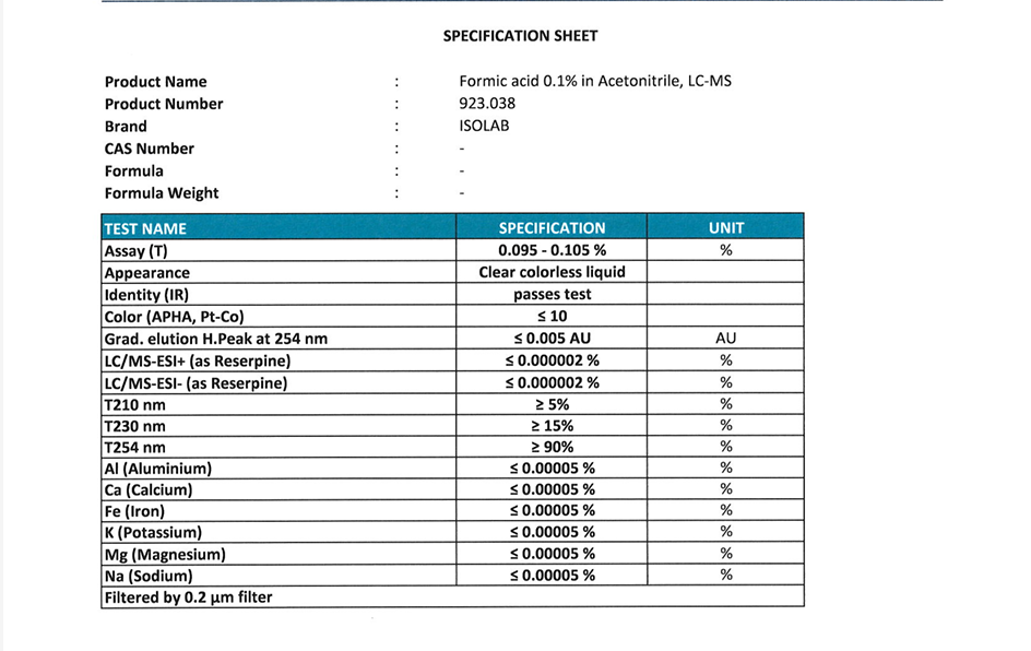 Formıc Acıd 0.1% In Acetonıtrıle, Lc-Ms Cas No:- 2,5LT cam şişe