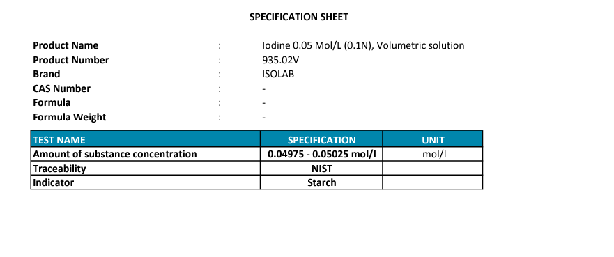 Iodıne 0,05 Mol/L (0,1 N) Cas No:- 1LT cam şişe