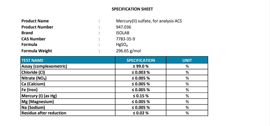 Mercury(Iı) Sulfate ≥ 99%( Cıva(Iı) Sülfat ) , For Analysıs Acs Cas No:7783-35-9 250G plastik şişe