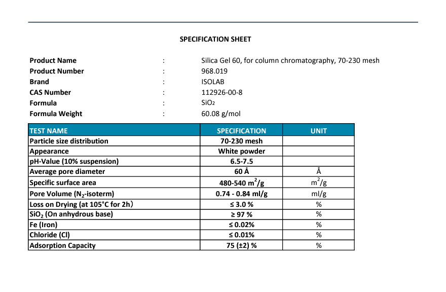 Sılıca Gel 60, For Column Chromatgraphy ,70-230 Mesh Cas No:112926-00-8 1KG plastik şişe