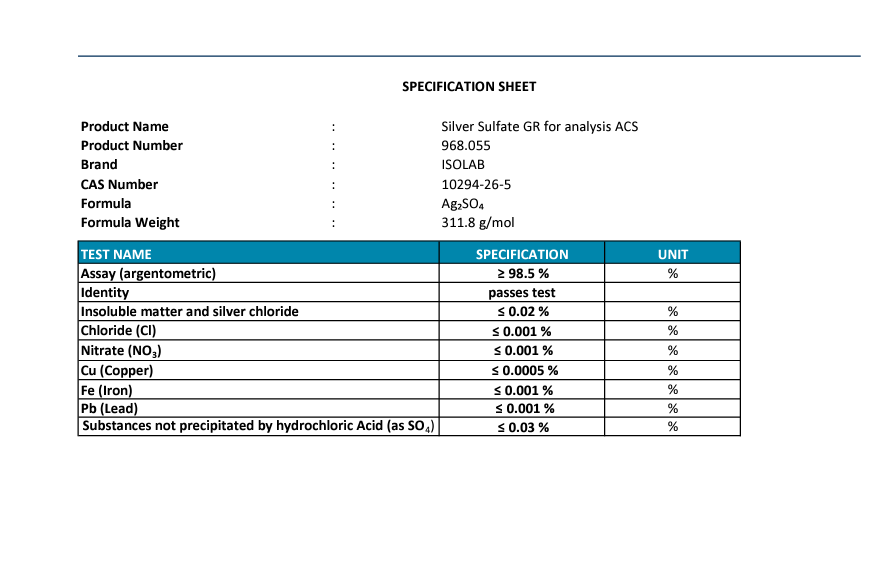 Sılver Sulfate ≥ 98.5%, Gr For Analysıs Acs Cas No:10294-26-5 100G cam şişe