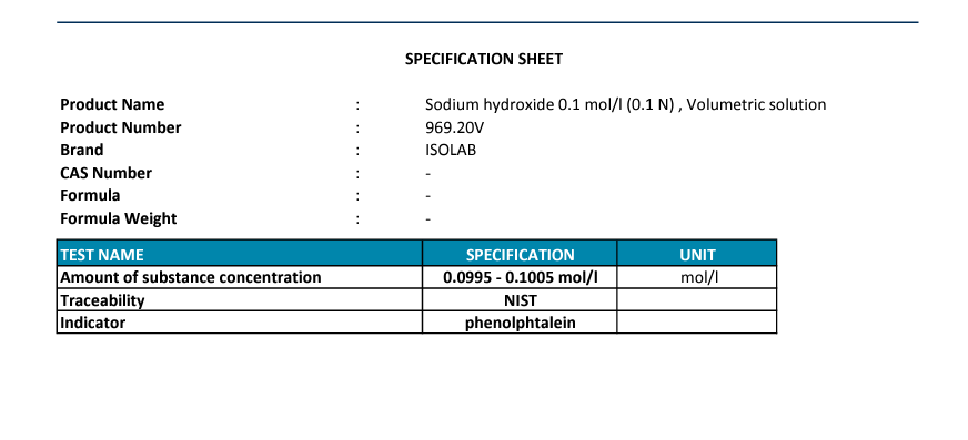 Sodıum Hydroxıde 0,1 Mol/L (0,1 N) Cas No:- 1LT plastik şişe