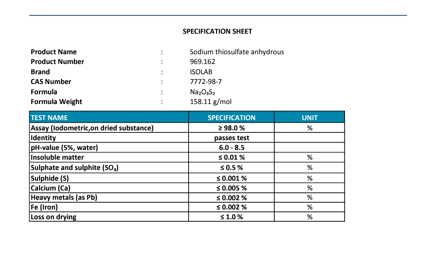 Sodıum Thıosulfate Anhydrous ≥ 98% Cas No:7772-98-7 2,5KG plastik şişe