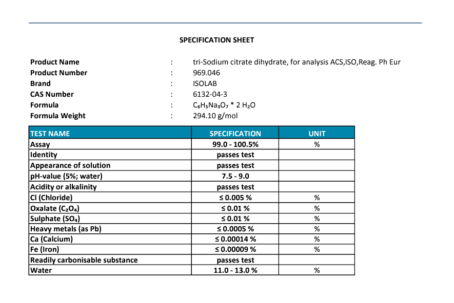 Trı-Sodıum Cıtrate Dıhydrate ≥ 99%( Tri-Sodyum Sitrat Dihidrat), For Analysıs Acs,Iso,Reag. P Cas No:1545801 5KG plastik şişe