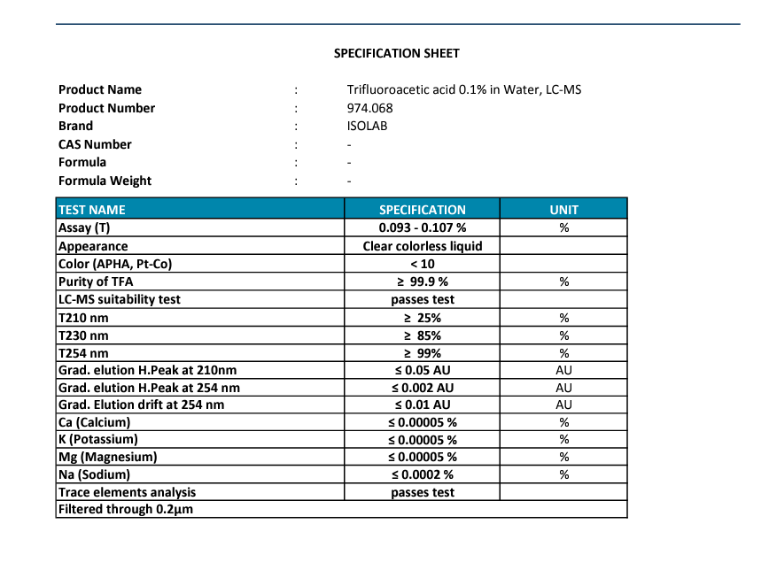 Trıfluoroacetıc Acıd 0.1% ( Trifloroasetik Asit )In Water, Lc-Ms Cas No:- 2,5LT cam şişe